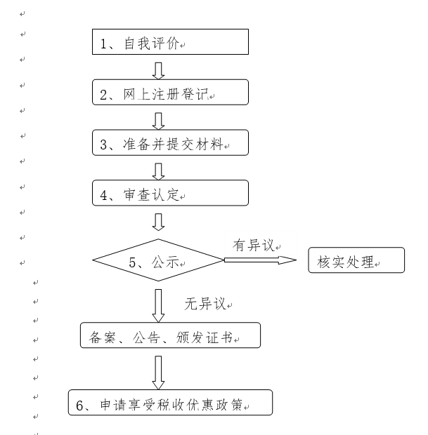 1.自我评价。企业应对照《认定办法》第十条进行自我评价。认为符合条件的在“高新技术企业认定管理工作网”(网址:www.innocom.gov.cn)进行注册登记。