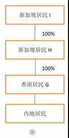 香港居民G投资内地居民并取得股息,新加坡居民I通过新加坡居民H间接持有香港居民G 100%的股份,虽然香港居民G不符合“受益所有人”条件,但是,如果新加坡居民I符合“受益所有人”条件,并且新加坡居民I和新加坡居民H从中国取得的所得为股息时,根据中国与新加坡签署的税收协定可享受的税收协定待遇均和香港居民G可享受的税收协定待遇相同,应认为香港居民G具有“受益所有人”身份,香港居民G可根据内地与香港签署的税收安排享受税收协定待遇。