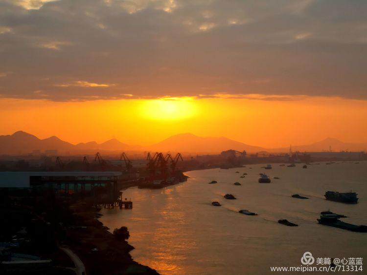 夕阳好像不甘心自己的沉沦,隐在地平线后,用自己的余晖,将江面映得殷红。