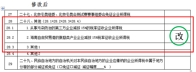 2.第28行项目名称修改为“二十八、其他(28.1+28.2+28.3+28.4)”;
