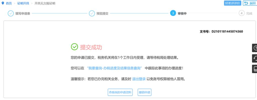 提交成功的事项可以在“我要查询”---“办税进度及结果信息查询”中进行查询受理状态