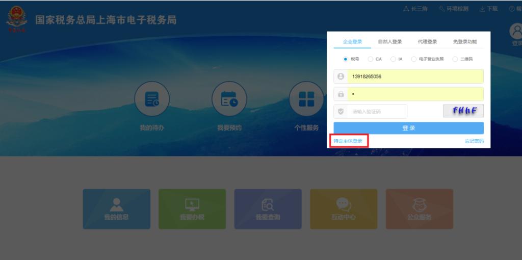 登录及模块路径:在国家税务总局上海市电子税务局登录页面,选择企业登录下方的特定主体登录,输入税号、密码、验证码后,通过实名认证登录电子税务局。