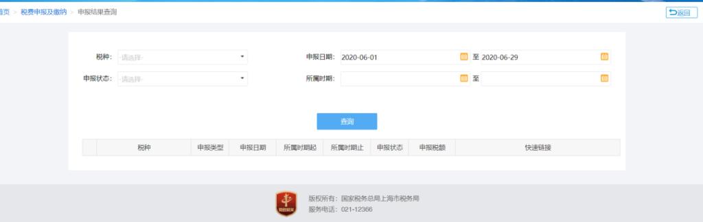 申报完毕后,点击“申报查询”跳转至申报结果查询页面。