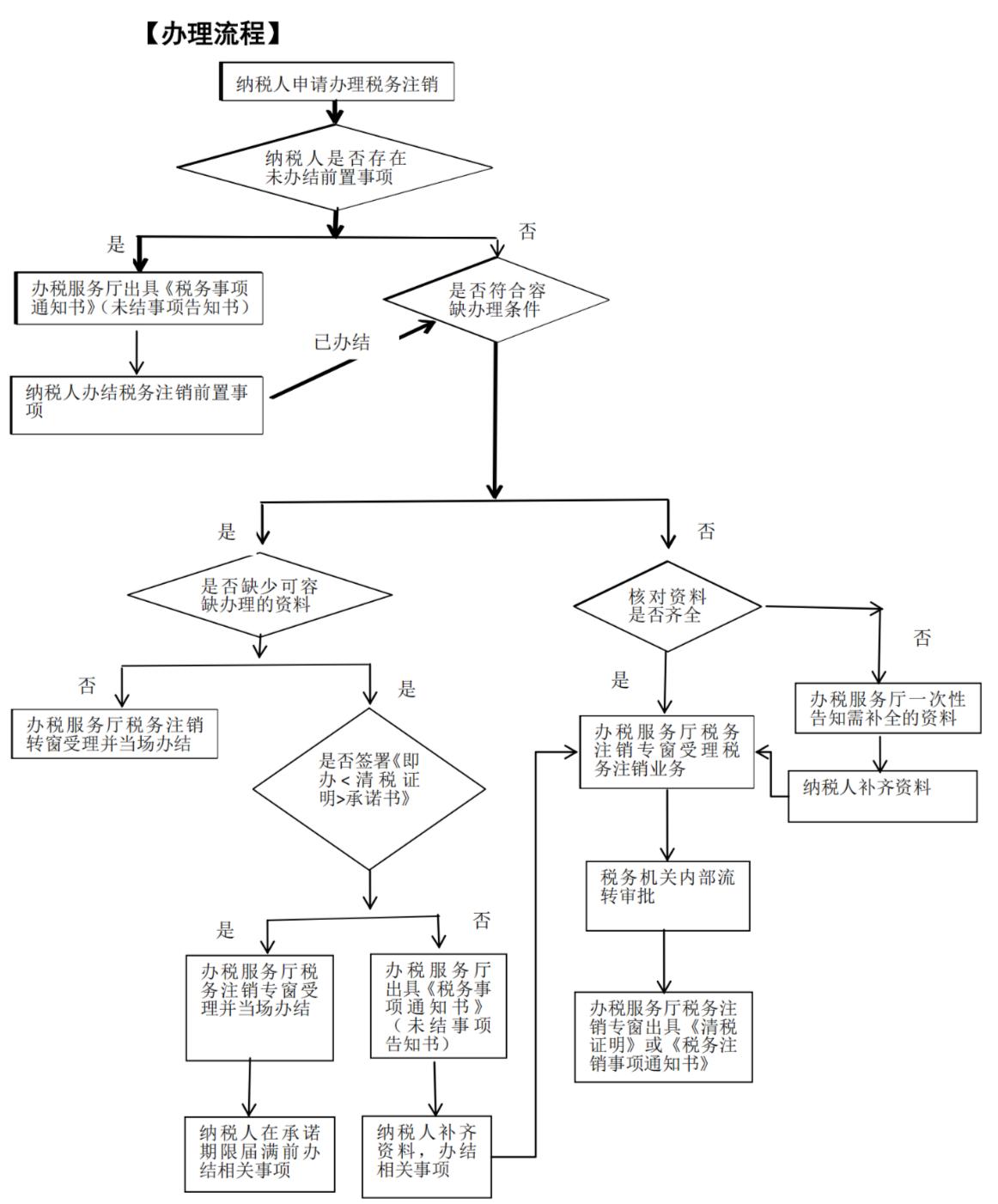 对未处于税务检查状态、无欠税费(滞纳金)及罚款、已缴销增值税专用发票及税控专用设备,且符合下列情形之一的纳税人,优化即时办结服务,采取“承诺制”容缺办理,即:纳税人在办理税务注销时,若资料不齐,可在其作出承诺后,税务机关即时出具清税文书。