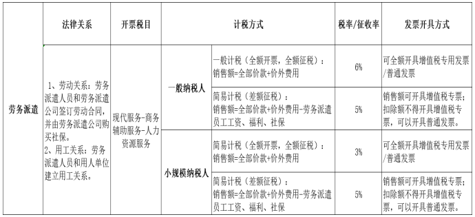 劳务派遣纳税方式汇总