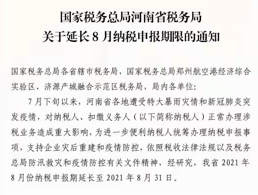 其他省份没有特别通知继续执行国家统一的税收征收期,8月征收期为8月16日。