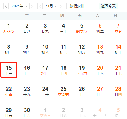 11月征收期内无连续三天以上假日,故而征收期结束日期为15日。