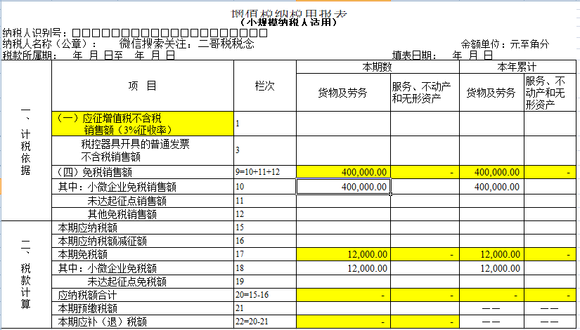 二哥税税念公司是小规模纳税人,按季度申报增值税,2021年第2季度,公司实现销售收入40万元,均自开了增值税普通发票。