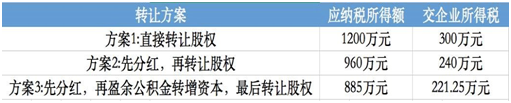 3、方案三:先“转增资本+分配利润”再转让股权。