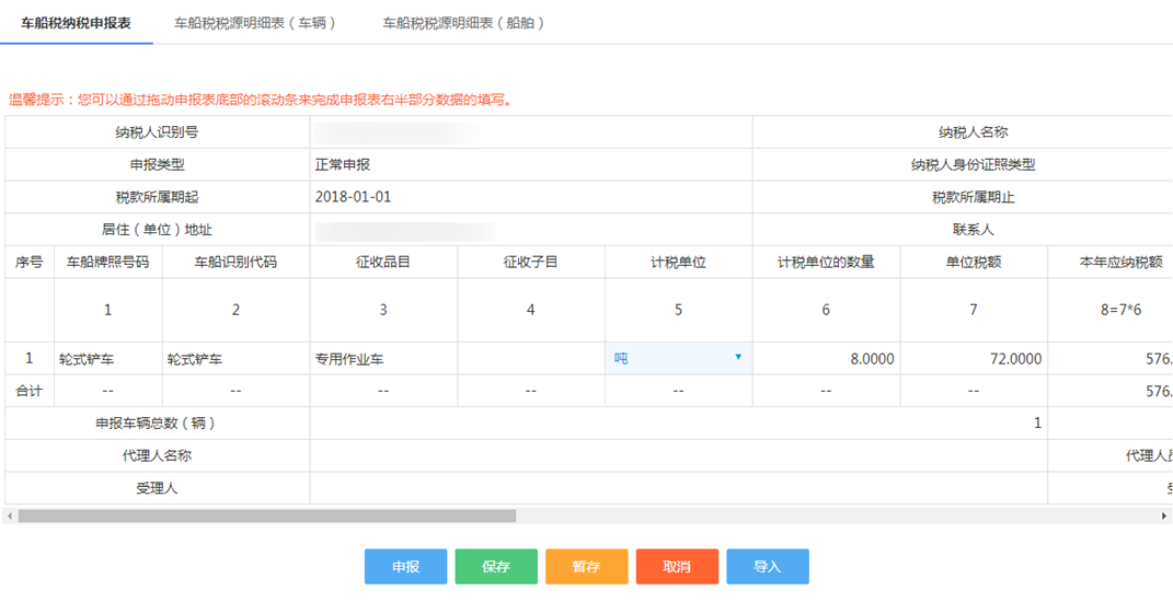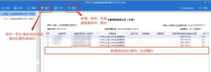 此外,还可以在车船税税源采集界面对车辆信息进行修改/新增/删除车船税税源信息操作。