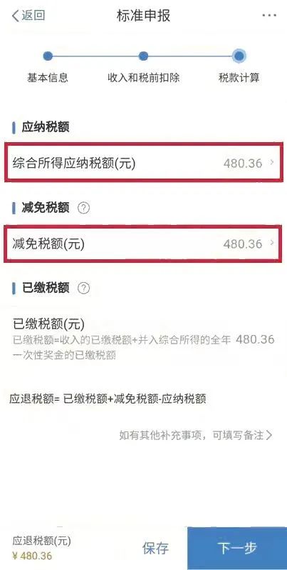注意:录入的减免税额不能大于申报主表上的综合所得应纳税额。