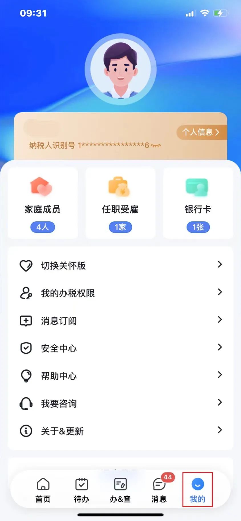 登录“个人所得税APP”后,点击下方【我的】→【个人信息】;