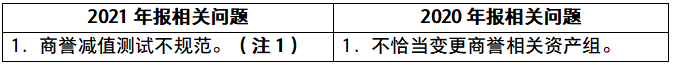 2020和 2021年报会计监管报告中相关问题对比以及2021年报具体问题如下: