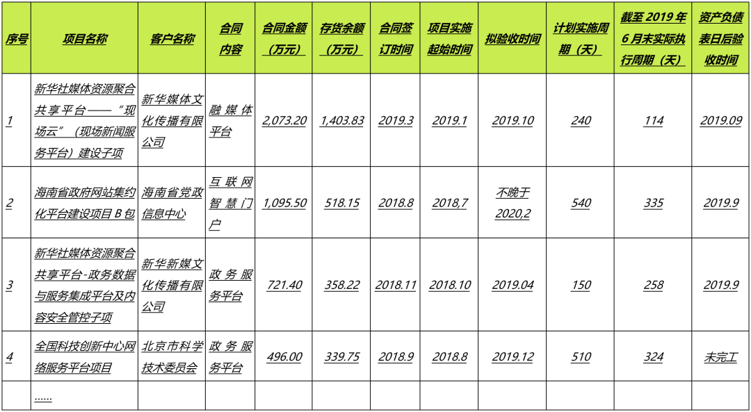 (4)获取主要项目实施起始时间、预计验收时间、实际完工验收时间、计划实施周期、实际实施周期等,检查主要项目与收入确认相关的支持性文件,包括中标文件、销售合同及验收报告等,了解并核查合同履行时间;