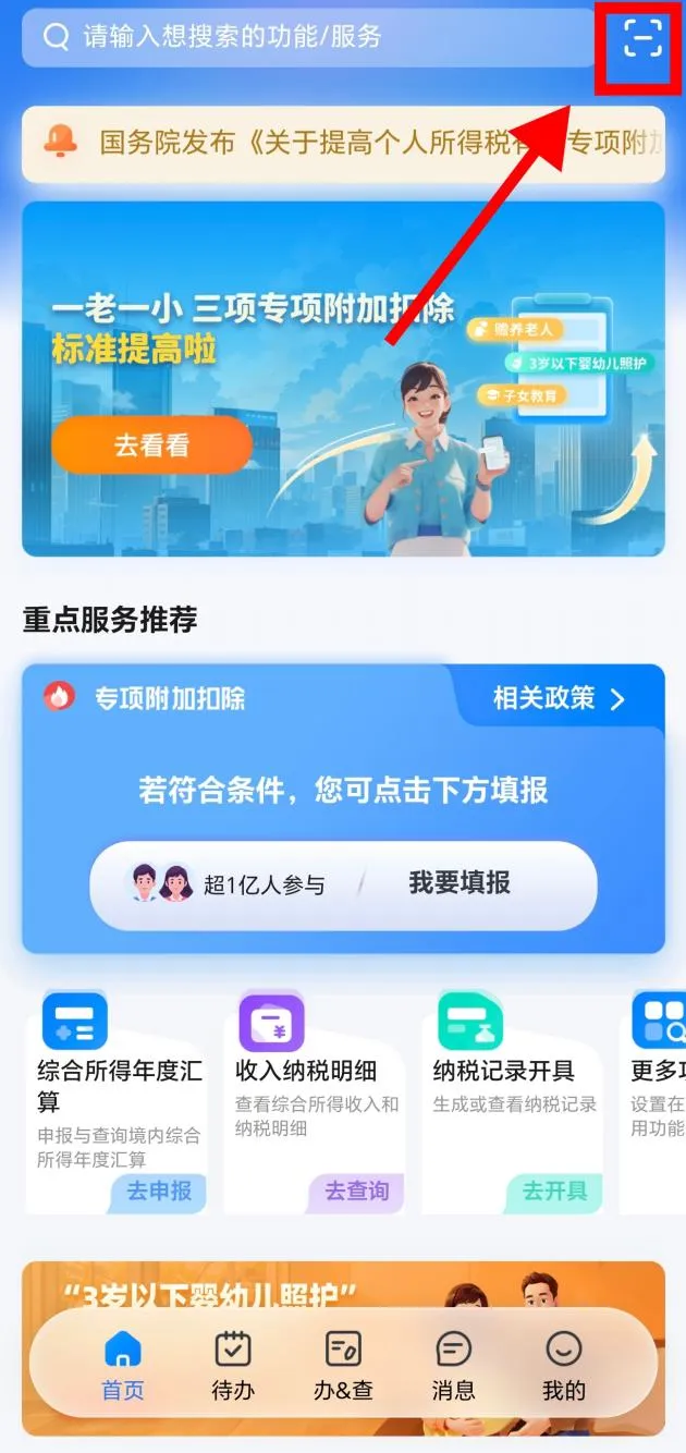 查验纳税记录真伪也很简单,您直接在个人所得税APP首页,点击页面右上角扫一扫图标,或者在“办&查”页面,下滑点击【票证查验】,扫描《个人所得税纳税记录》右上角二维码或手动输入查询信息,即可进行校验。