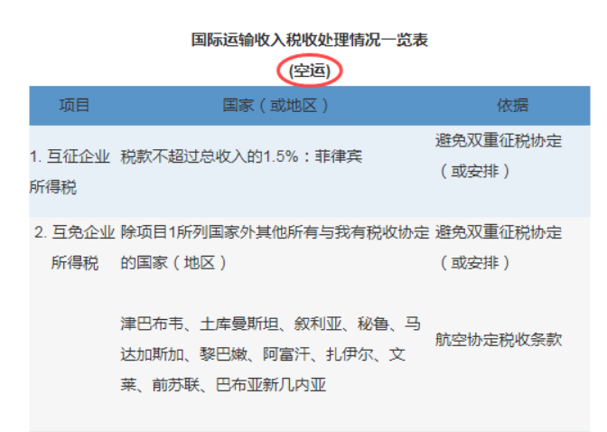 以上就是查询税收协定的具体步骤啦,除此之外,“税收条约”专栏还整理了“国际运输收入税收处理情况一览表”,详细列明了优惠项目、涉及国家(或地区)以及相关依据,有需要的可以一并了解哦~