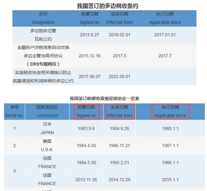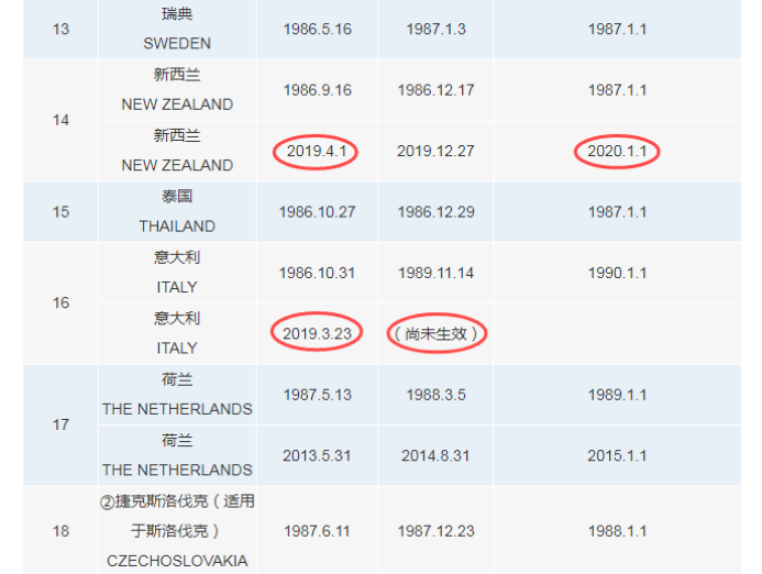 比如,中国和新西兰的新版税收协定签署日期是2019年4月1日,执行日期是2020年1月1日,因此新西兰税收居民2020年1月1日以后从中国取得的所得,适用新版税收协定。而中国与意大利的新版税收协定虽然签署日期是2019年3月23日,但是生效日期显示尚未生效,因此意大利税收居民2020年1月1日以后从中国取得的所得,不能适用新版协定,只能适用1990年1月1日生效的协定。
