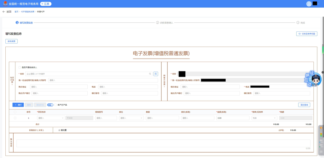 https://etax.jiangsu.chinatax.gov.cn:8443/),点击“我要办税”-“发票使用”-“代开增值税发票”。