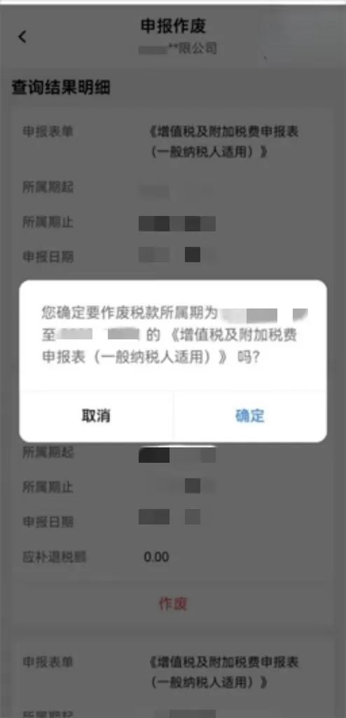 点击【作废】,系统将自动弹出“请确认”提示,点击【确定】,确定所属期时间。