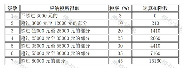 (注:适用税率,以全年一次性奖金收入除以12个月得到的数额对照月度税率表确定)
