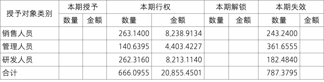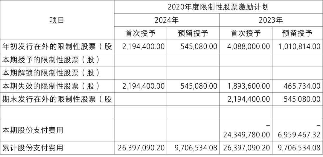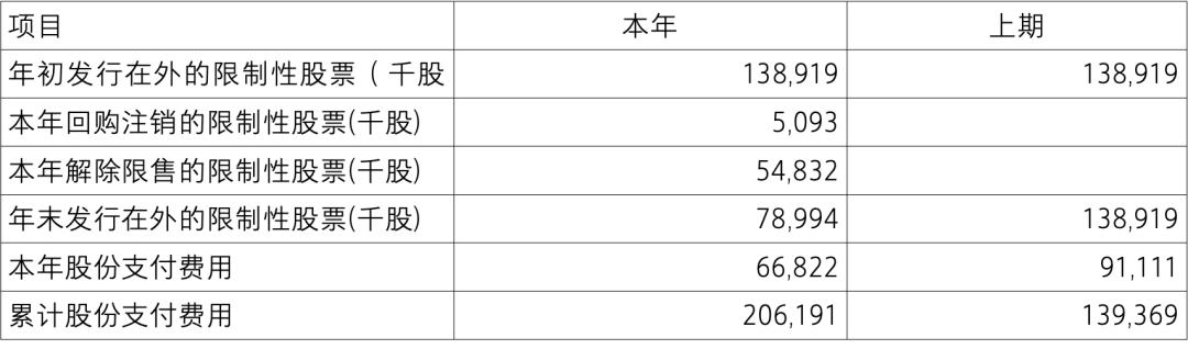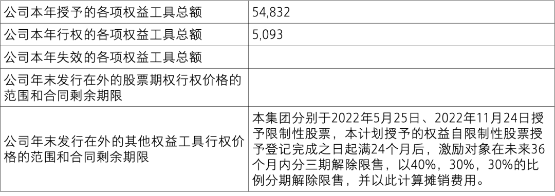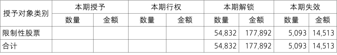 于2024年6月,因激励计划授予的922名激励对象所持有的44,393千股限制性股票限售期已满,符合解除限售条件,因此该部分限售期股票全部解禁。于2024年12月,因激励计划授予的270名激励对象所持有的10,439千股限制性股票限售期已满,符合解除限售条件,因此该部分限售期股票全部解禁。