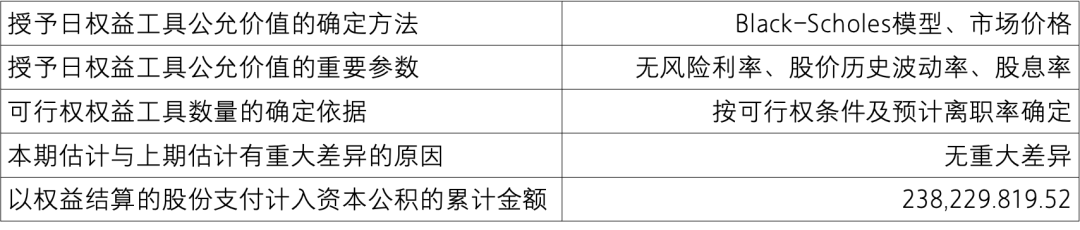 本集团以授予日公司股票收盘价确定授予日限制性股票的公允价值。首次授予日和预留授予日公司股票收盘价分别为40.34元和57.17元,考虑激励计划对可行权日后的限制条件影响后与激励对象每股增资价格19.57元和28.36元的差额并计入股份支付费用。