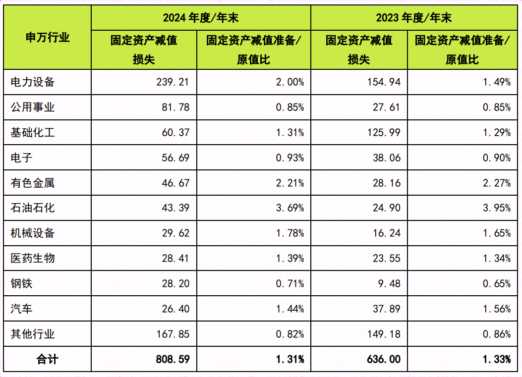 固定资产减值损失行业分布