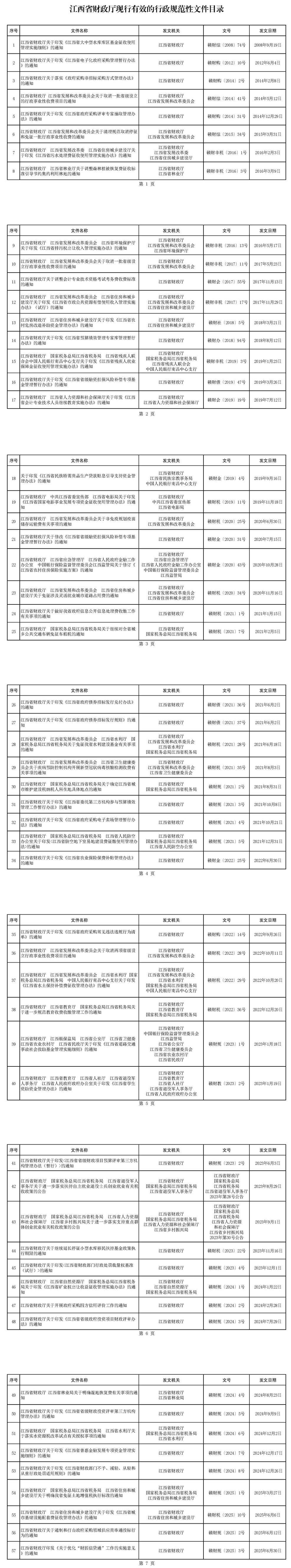 附件:江西省财政厅现行有效的行政规范性文件目录