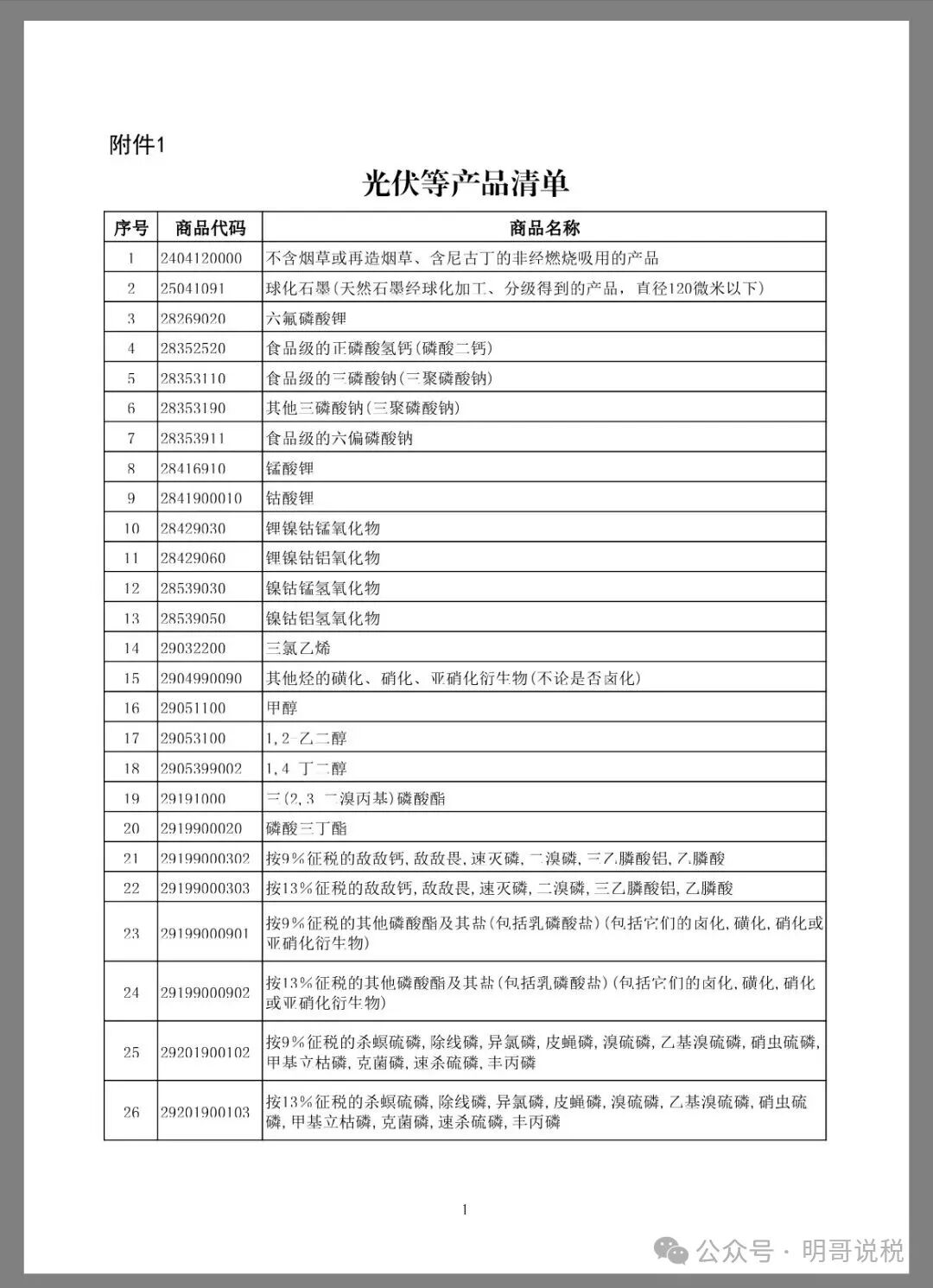 一、自2026年4月1日起,取消光伏等产品增值税出口退税。具体产品清单见附件1。