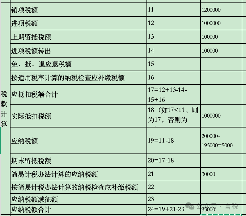 (2)抵减后的一般计税应纳税额为=20-19.5=0.5万元;