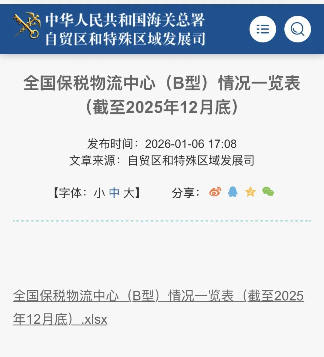 | 保税物流中心(B型)情况一览表 (截至2025年12月底全国名单) |