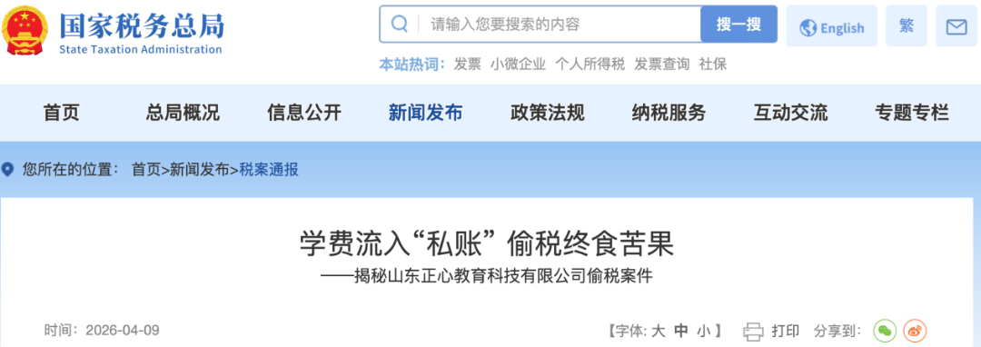 四、国家税务总局潍坊市税务局第二稽查局依法查处山东正心教育科技有限公司隐匿收入偷税案件