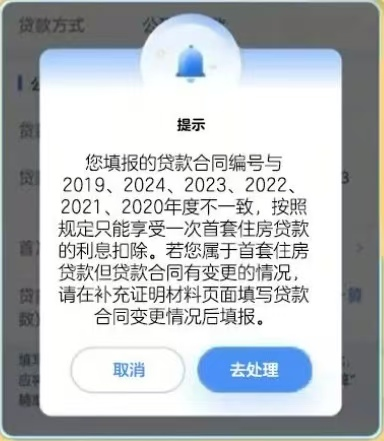 【重要提示】只要纳税人申报扣除过一套住房贷款利息,在个人所得税专项附加扣除的信息系统里存有扣除住房贷款利息的记录,无论扣除时间长短、也无论该住房的产权归属情况,纳税人就不得再就其他房屋享受住房贷款利息扣除。