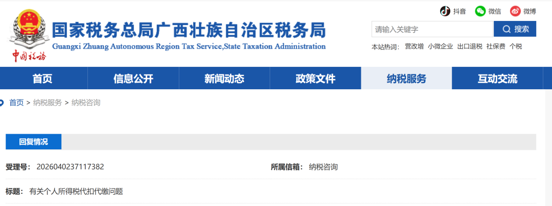 尊敬的纳税人您好!您提交的网上留言咨询已收悉,现答复如下: