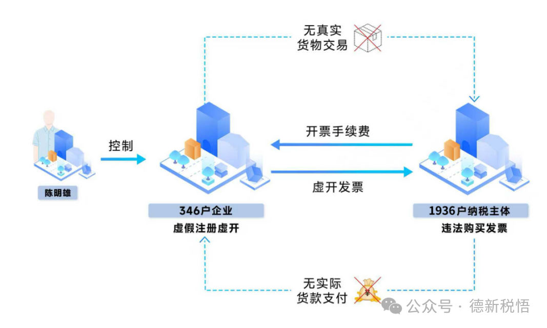 近期,国家税务总局天津市税务局第一稽查局联合公安经侦等部门,根据举报线索,依法查处以陈明雄为首的犯罪团伙虚开增值税发票案件。经查,2024年,以陈明雄为首的犯罪团伙通过非法渠道购买公民信息注册成立天津濠愈农业科技有限公司等346户企业,在没有真实业务交易的情况下,对外虚开增值税普通发票7846份。2025年3月,国家税务总局天津市税务局第一稽查局依据相关法律法规,对天津濠愈农业科技有限公司等346户企业开具的7846份增值税普通发票认定为虚开。2025年11月,主犯陈明雄、陈强2人因犯虚开发票罪,分别被判处有期徒刑六年、五年,并处罚金。同时,税务部门已依法对1936户下游受票企业开展调查核实或立案检查。