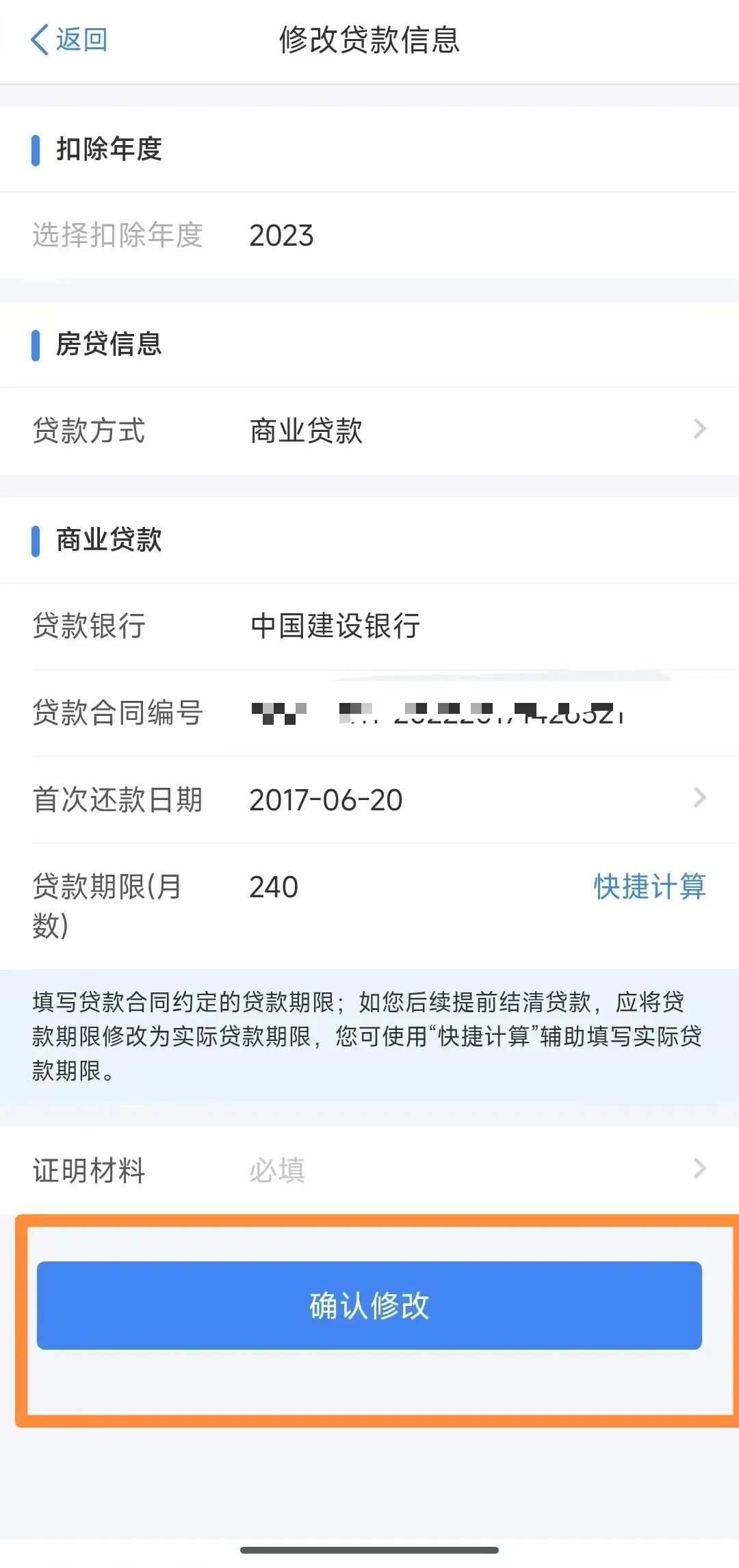 修改步骤:进入填报详情页面→点击“修改”→点击“修改贷款信息”→在“贷款合同编号”栏次填写正确的贷款合同编号→点击“确认修改”。